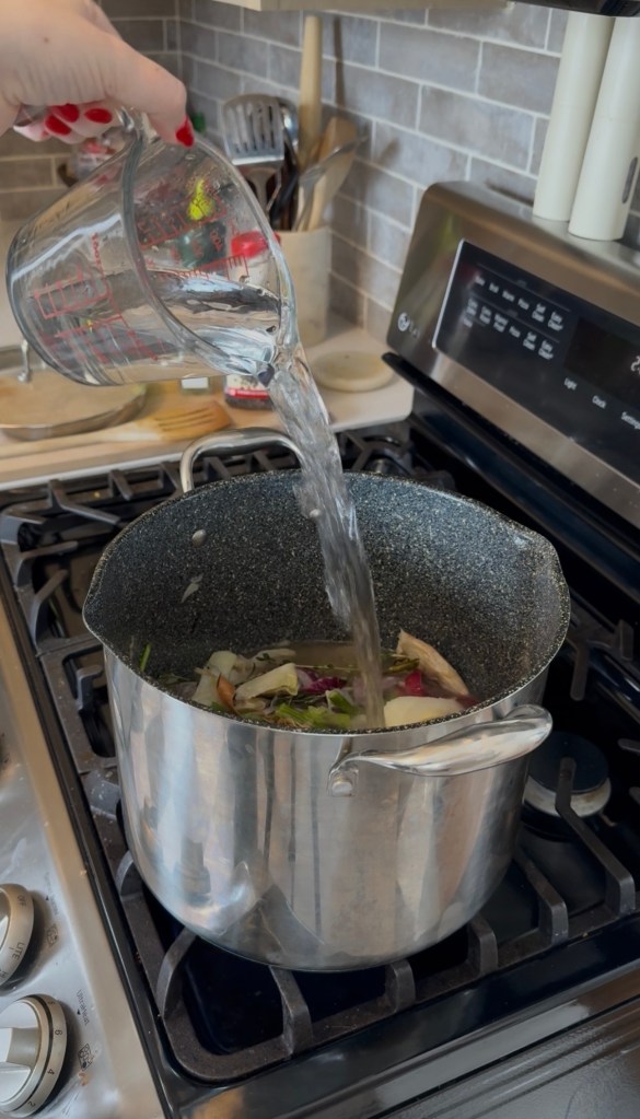 It’s about those small, grounding habits that make you feel capable when everything else feels unfinished. On days when I’m overwhelmed, when the house feels loud and the to-do list is longer than my patience, making stock is something I can complete. It’s slow. It’s simple. It asks very little of me—just time, water, and scraps I already have.